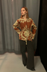 - Closing: Comes with two belts, self fabric and moroccan gold tassles