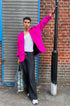 - Fit: Oversized or feminin if cinched in at the waist with the belt