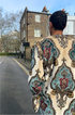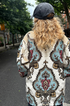 - Closing: Comes with two belts, self fabric and moroccan gold tassles