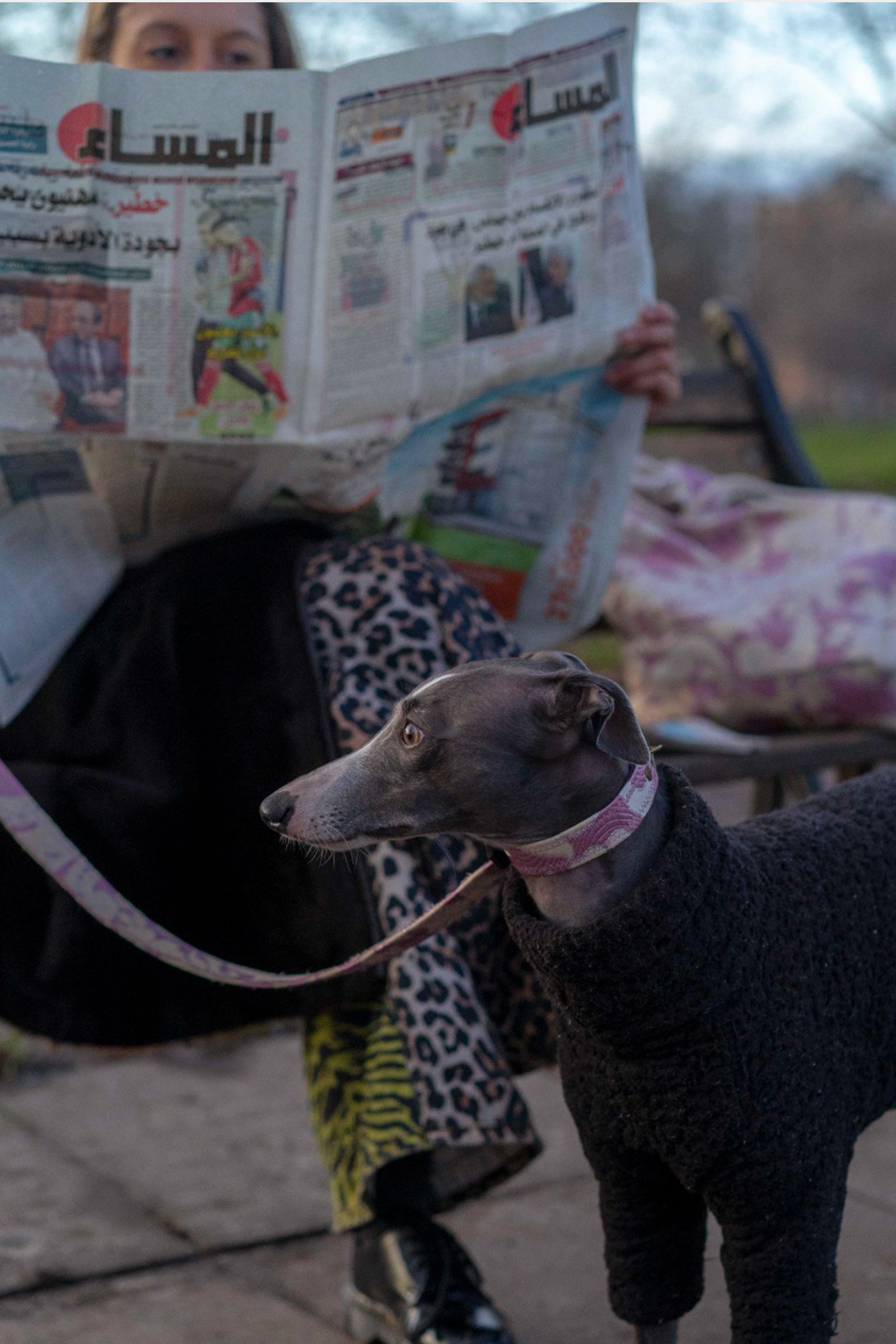 Dark brown leather collar // Jacquard fabric from our collection