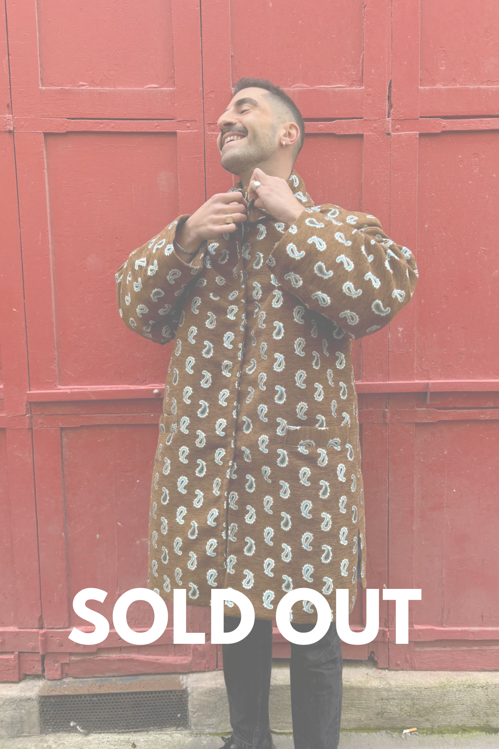 Coat hand-sewn by my favorite artisans in Morocco, with rare & antique fabrics turned into very-limited pieces.