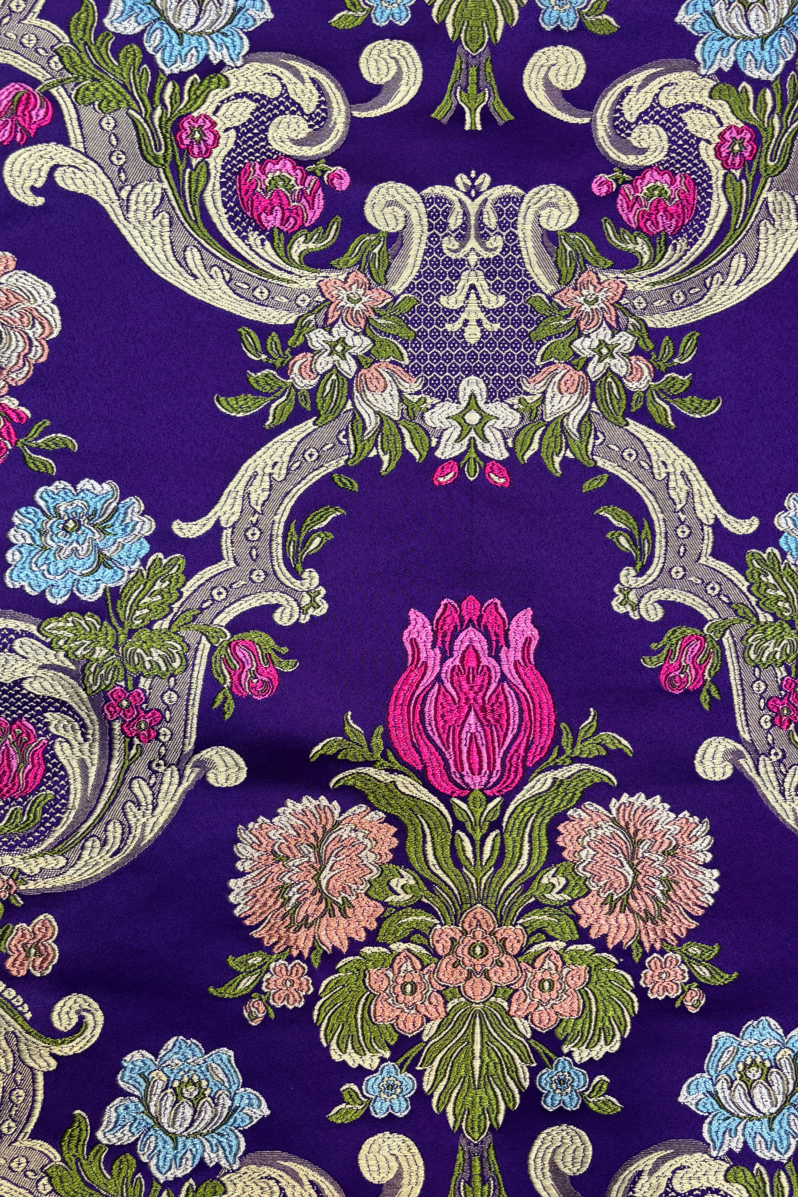 - Fabric: Upcycled jacquard upholstery fabric